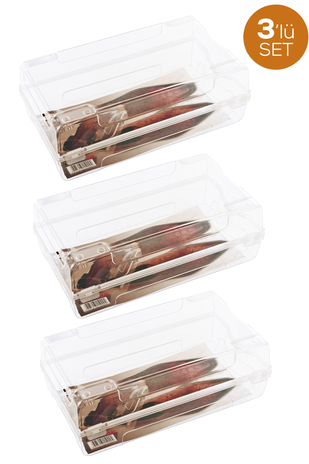 Mano 3 Adet Plastik Şeffaf Erkek Ayakkabı Saklama Kutusu - E-101-3
