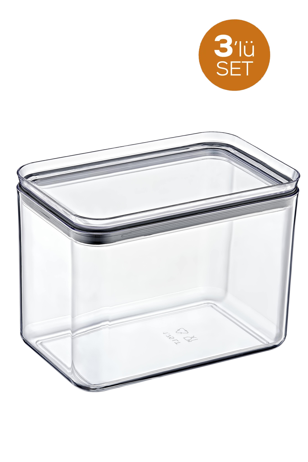 3 Adet 2,6 Litre Sızdırmaz Dikdörtgen Kristal Saklama Kabı EP-157