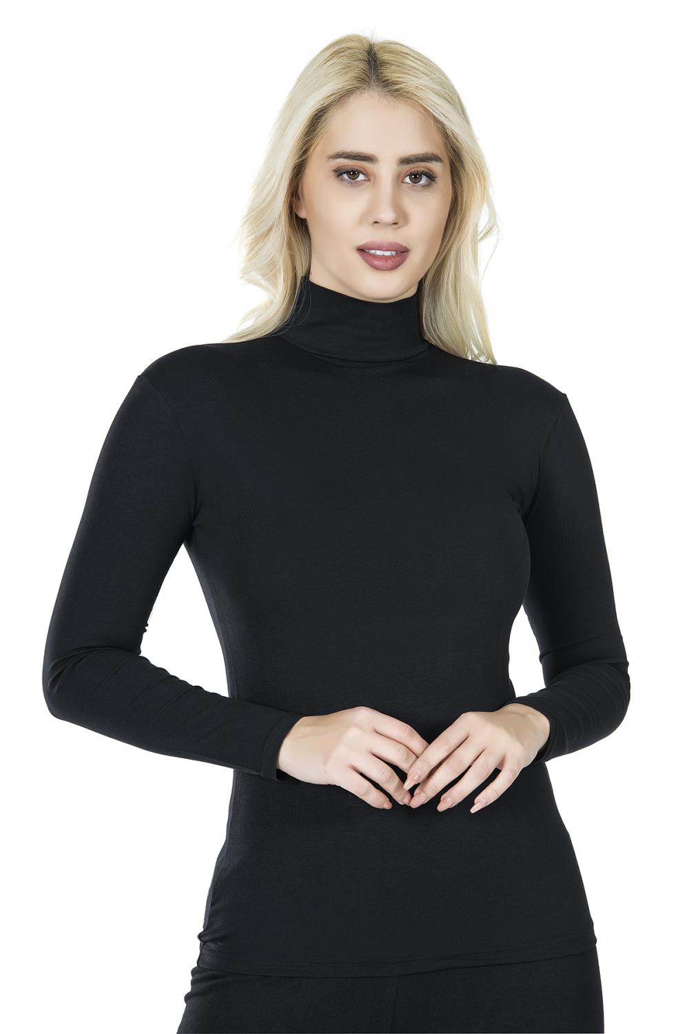 Derya Kurşun Balıkçı Yaka Uzun Kol Kadın Siyah Tişört 245