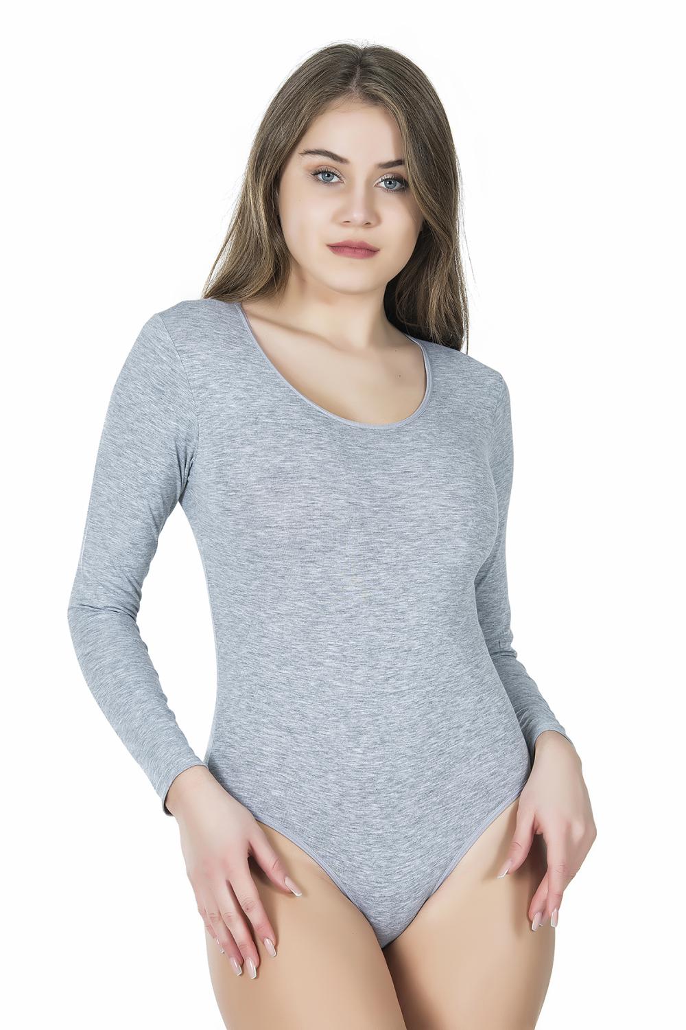 Derya Kurşun Bisiklet Yaka Uzun Kol Çıtçıtlı Kadın Gri Body 321