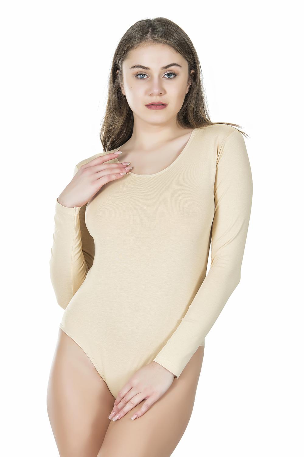 Derya Kurşun Bisiklet Yaka Uzun Kol Çıtçıtlı Kadın Ten Body 321