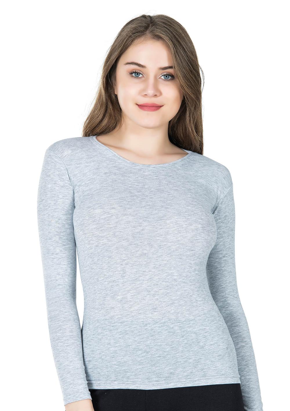 Derya Kurşun Bisiklet Yaka Uzun Kol Kadın Gri Tişört 244