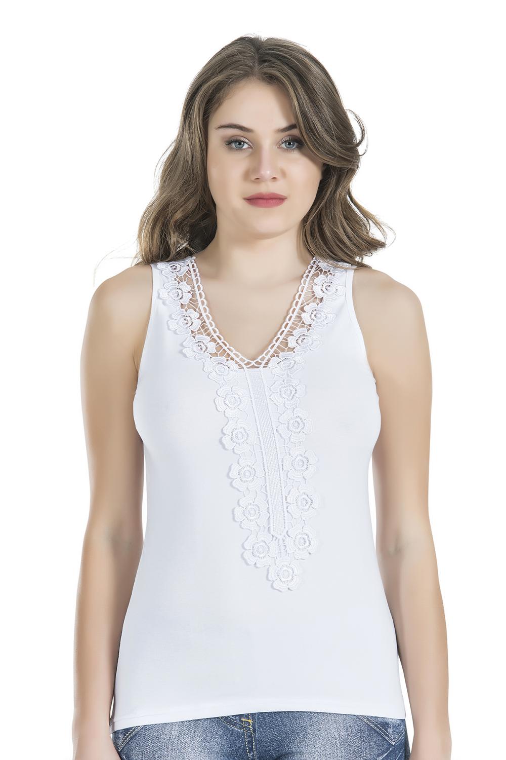 Derya Kurşun Güpürlü Beyaz Sıfır Kol Kadın Atlet 155