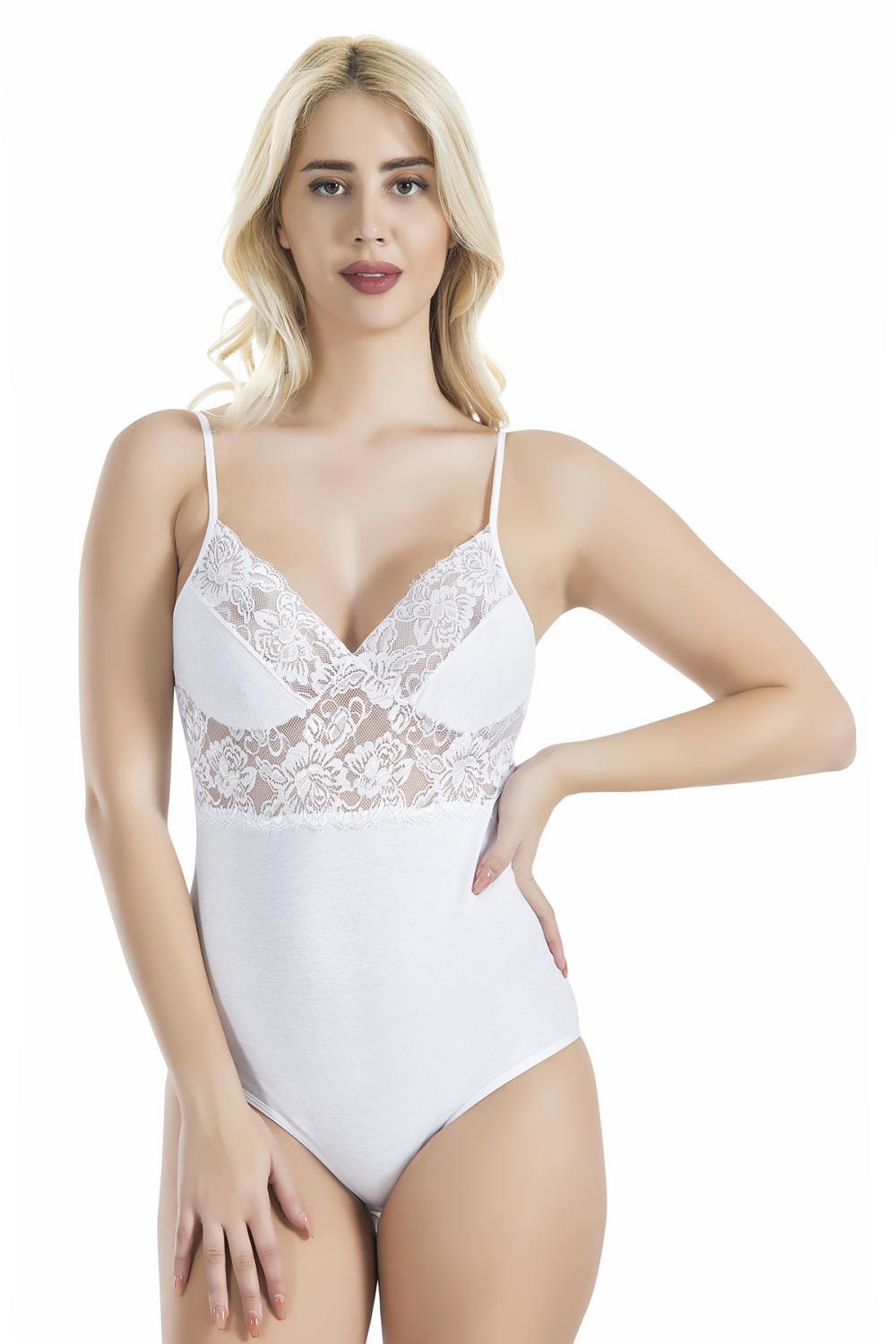 Derya Kurşun İp Askılı Dantelli Kadın Beyaz Body 334