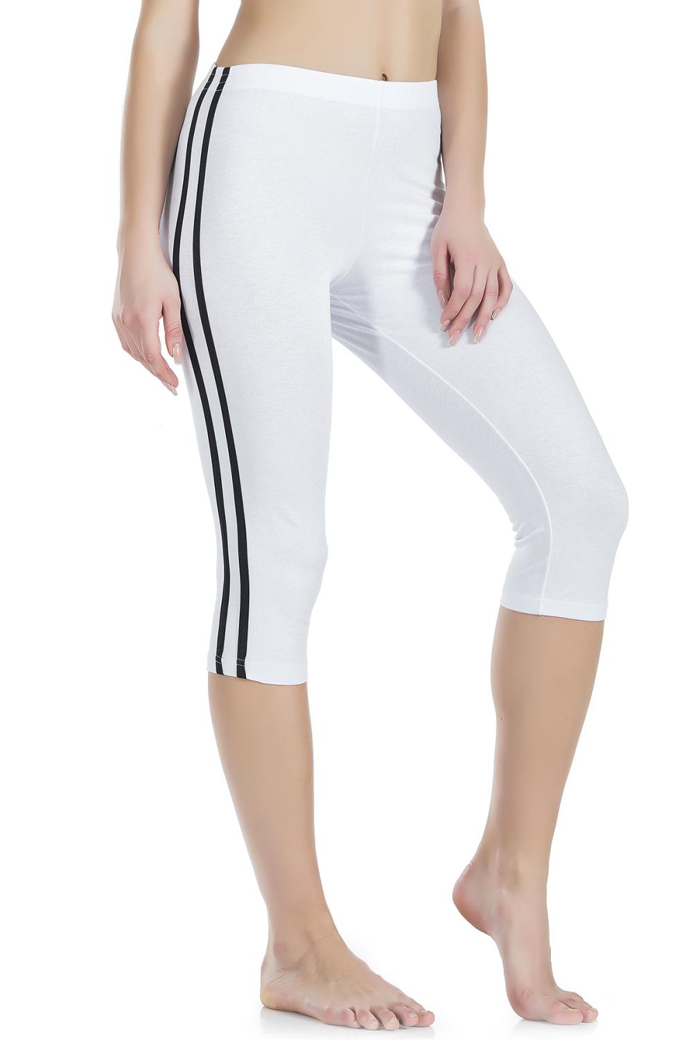 Derya Kurşun Kadın Çizgili Kısa Beyaz Kapri Tayt 0534