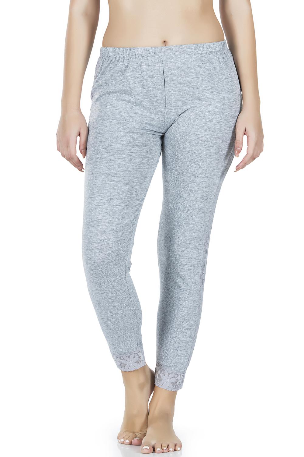 Derya Kurşun Kadın Dantel Şeritli Gri Uzun Tayt - 416