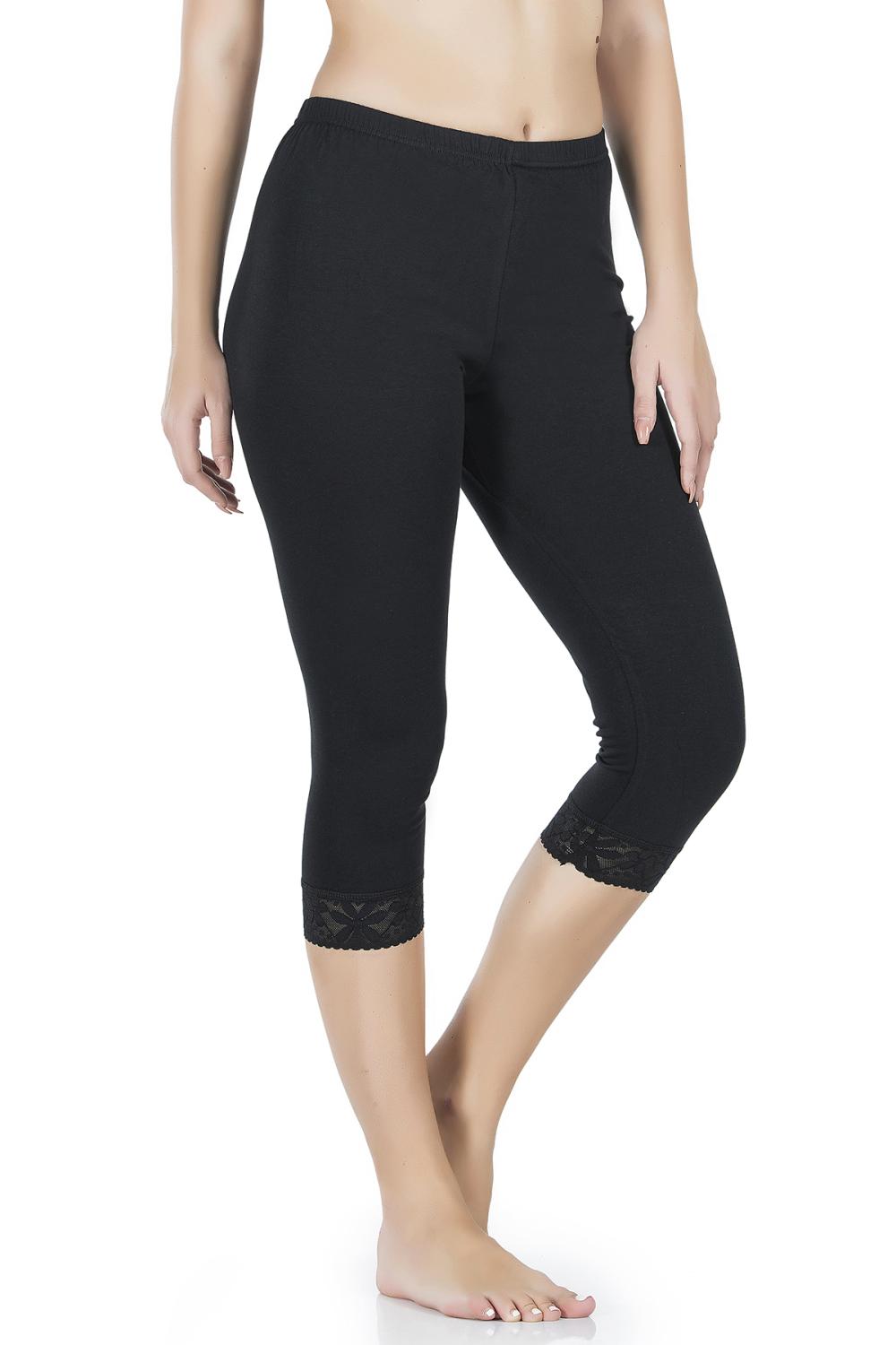Derya Kurşun Kadın Paçası Dantelli Siyah Kısa Tayt 414