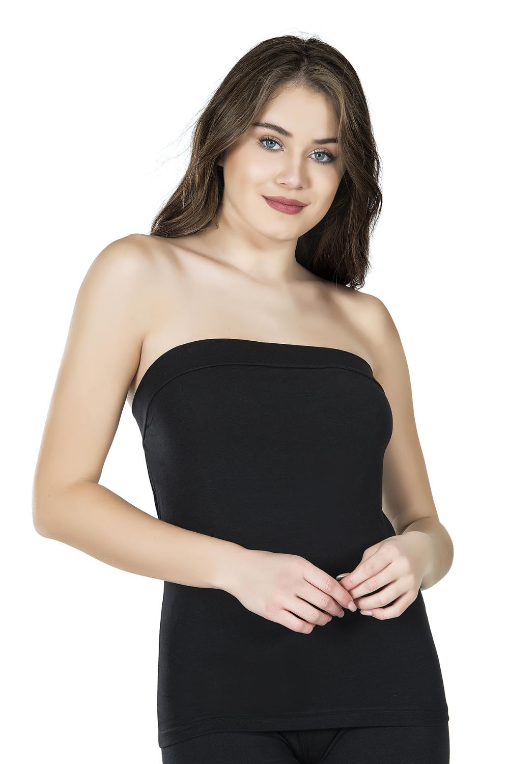 Pamuklu ve likralı kumaştan üretilmiş straplez kadın atlet