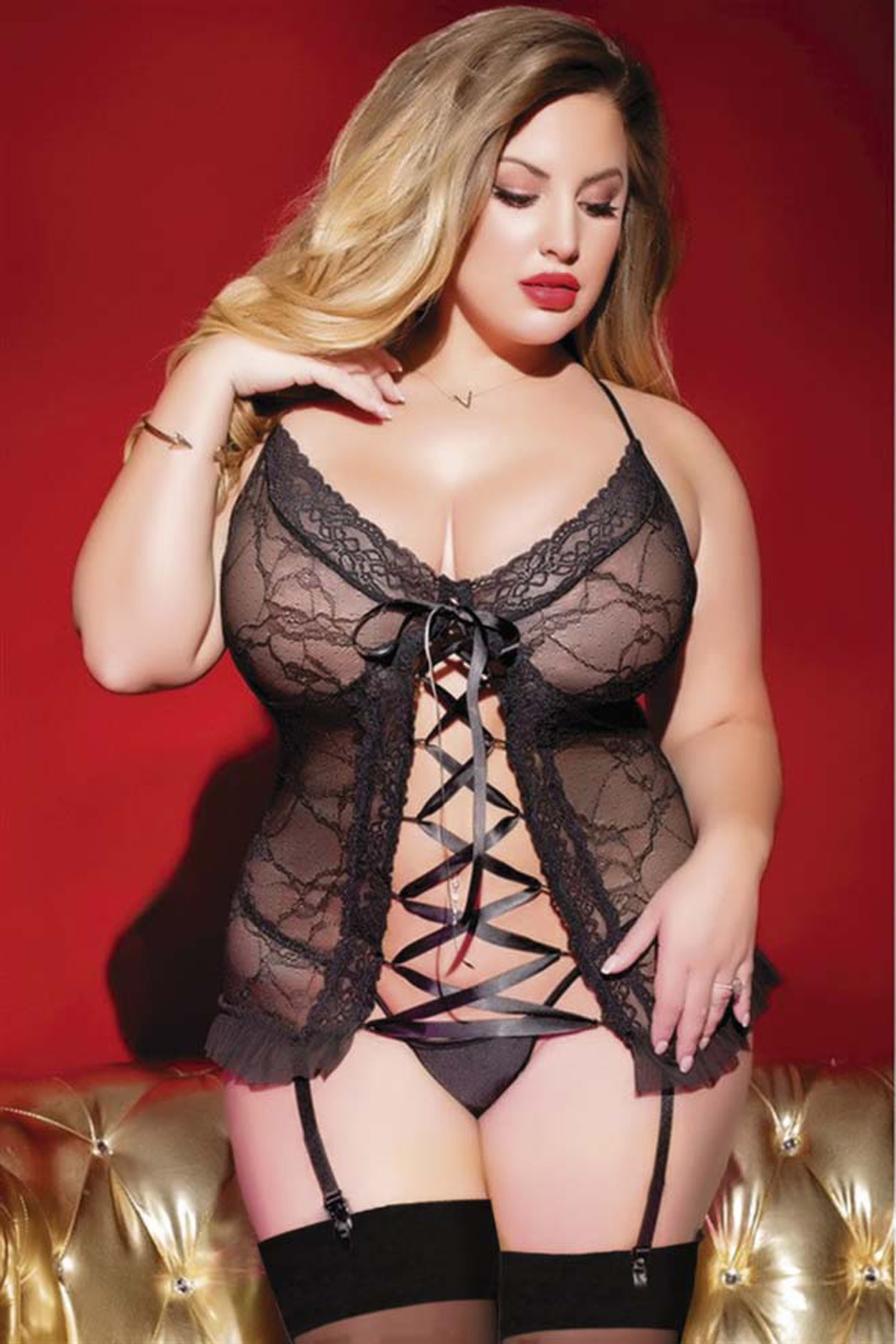 Kadın Büyük Beden Fantezi Siyah Jartiyer Takımı - 8244