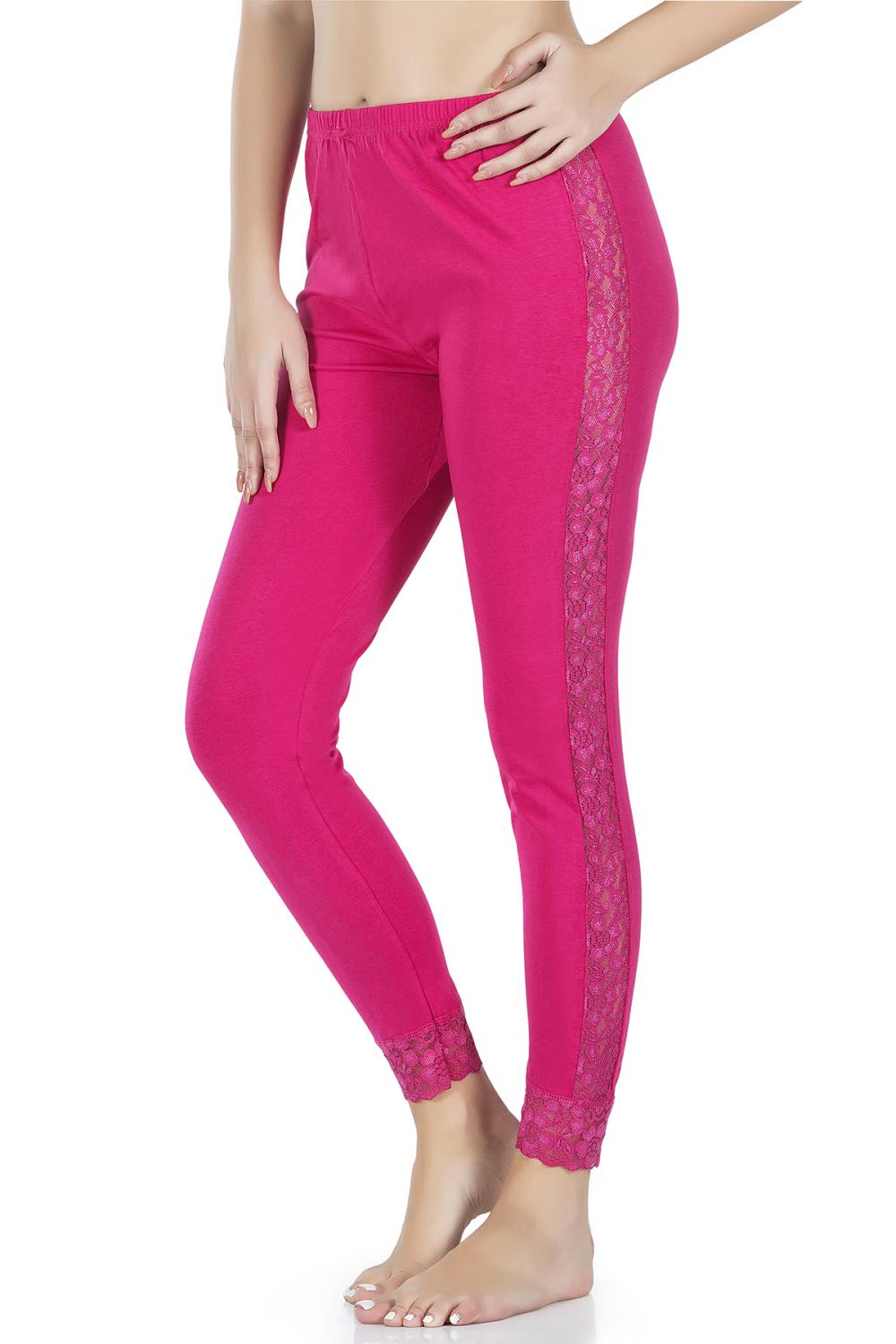 Derya Kurşun Kadın Dantel Şeritli Fuşya Uzun Tayt - 416