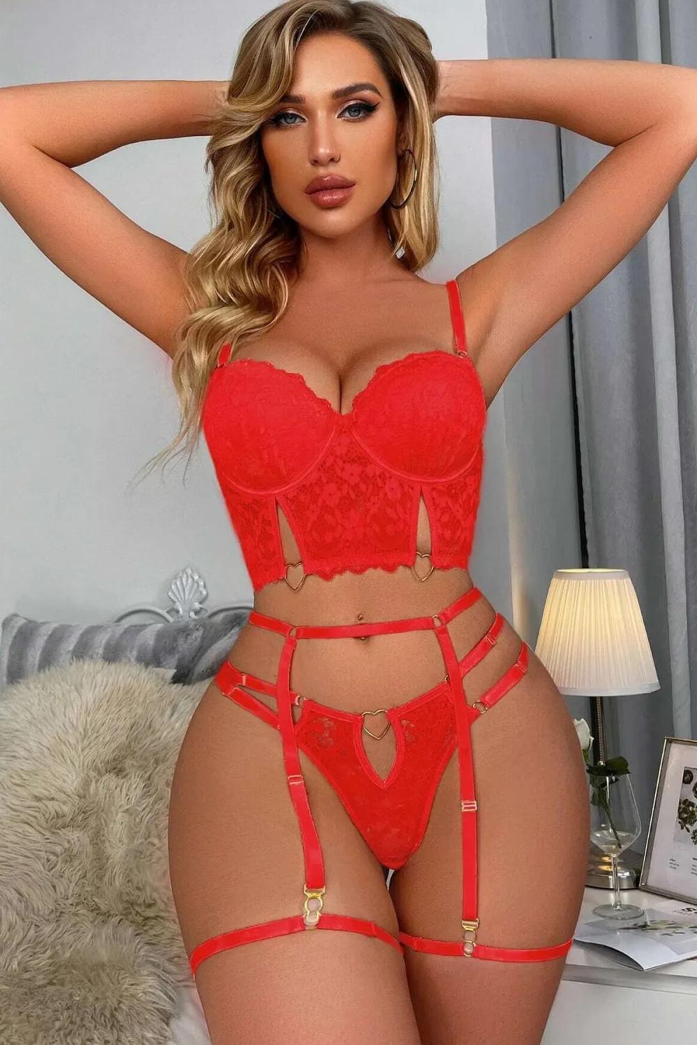 Kadın Kırmızı İç Çamaşır Takımı & Jartiyer- 8406R