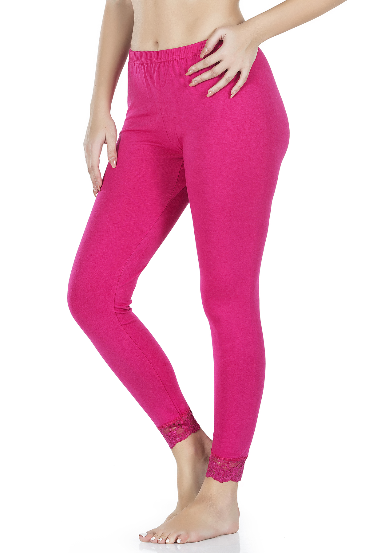 Derya Kurşun Kadın Paçası Dantelli Fuşya Uzun Kadın Tayt - 413FXY