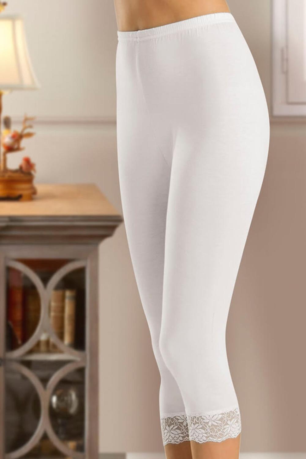 Derya Kurşun Kadın Paçası Dantelli Beyaz Kısa Tayt 414W