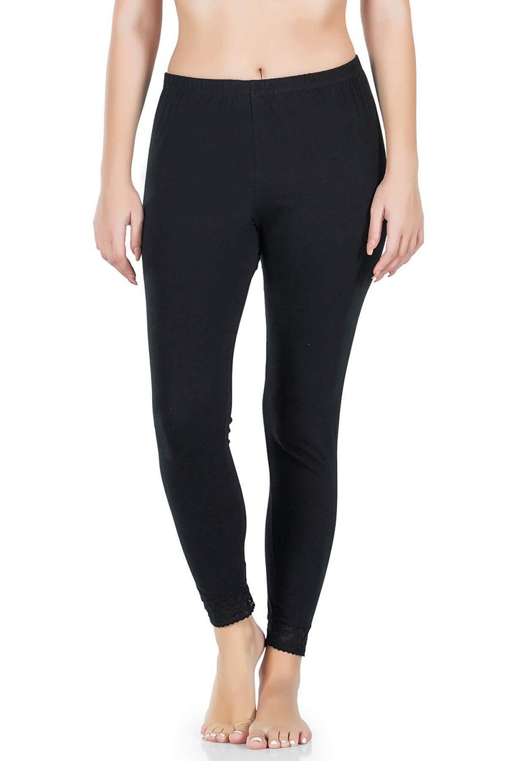 Derya Kurşun Kadın Paçası Dantelli Siyah Tayt - 422