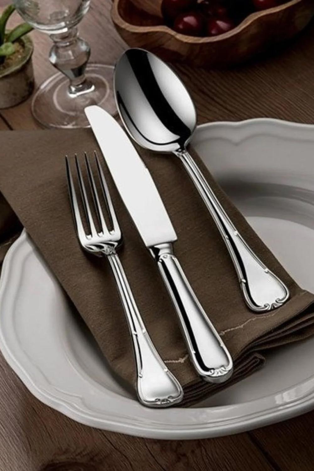 24 parçadan oluşan set, 6 kişilik yemekler için idealdir ve her türlü sofraya şıklık katar. Setimiz 6 adet Yemek Kaşığı, 6 Adet Yemek Çatalı, 6 Adet Yemek Bıçağı ve 6 Adet Tatlı Çatalından oluşmuştur.