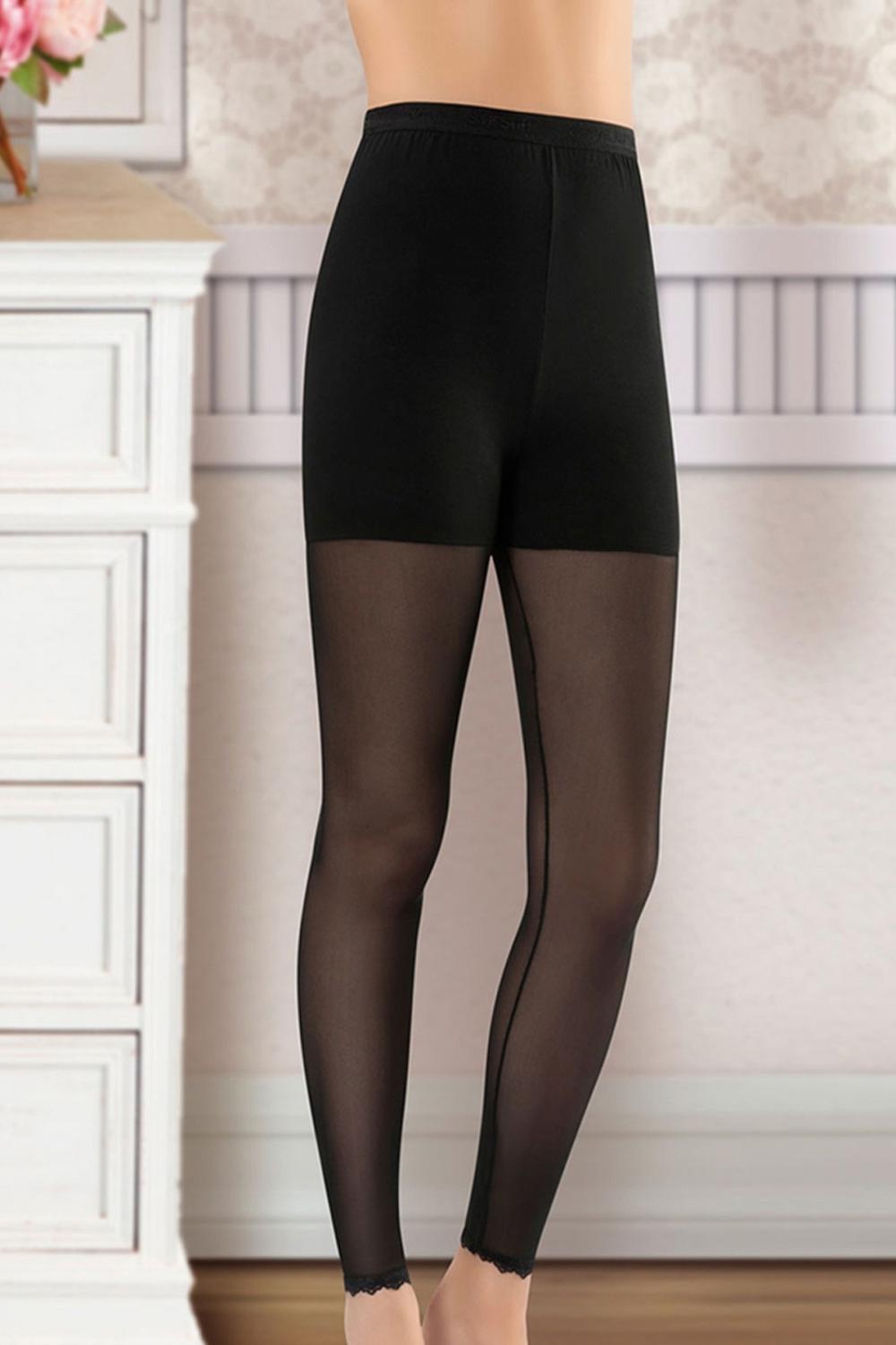 Derya Kurşun Transparan Detaylı Kadın Siyah Tayt - 478