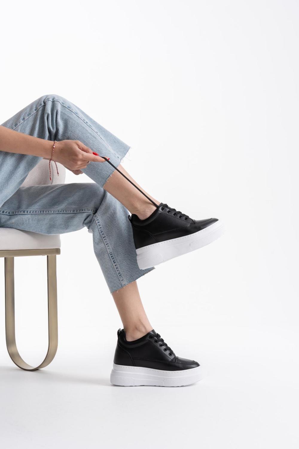 Trendella Kadın Gizli Topuk Spor Beyaz Tabanlı Siyah Ayakkabı TR10MS01A