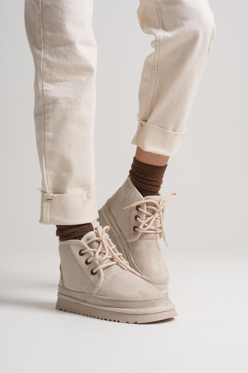 Bej modeli, yalın ve zarif tasarımıyla kış stilinize aydınlık bir hava katar. Su geçirmez süet yüzeyi ve kürklü iç astarı sayesinde hem konforlu hem sıcak bir kullanım sunar. Bej tonuyla minimalist ve sofistike kombinlere uyum sağlar.
