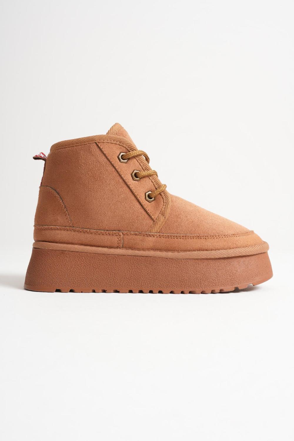 Taba modeli, doğal sıcaklığı ve sofistike havasıyla dikkat çeker. Kürklü astarı ekstra konfor sağlarken, 5 cm kalın tabanı güçlü bir yürüyüş sunar. Taba rengi, özellikle kahve ve toprak tonlarıyla kombinlendiğinde doğal bir şıklık yaratır.