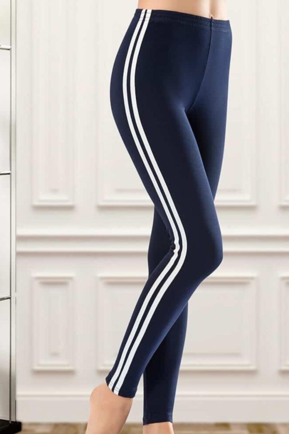 Derya Kurşun Yüksek Bel Şeritli Kadın Tayt 0531